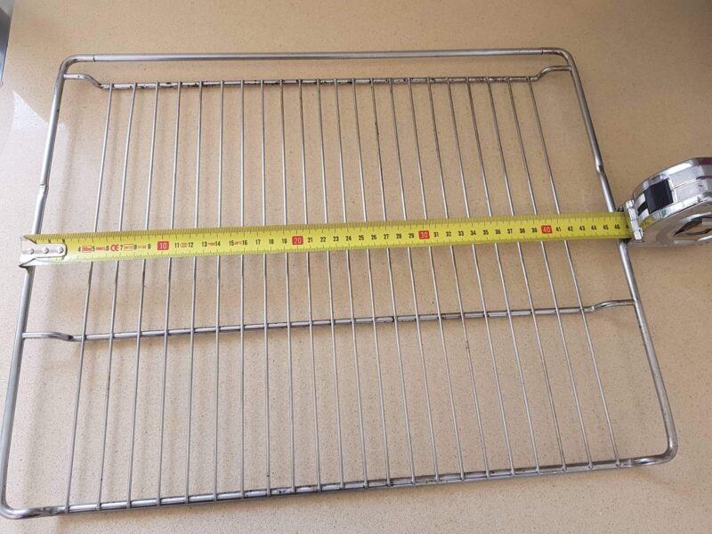 אנא צפו בסרטון. יש למדוד את רשת התנור במדויק מימין לשמאל (כמו בתמונה), במטר קשיח בלבד (לא במטר גמיש בשום אופן! הוא לא מדויק!) ולבחור את המידה המתאימה מתוך טבלת המידות.